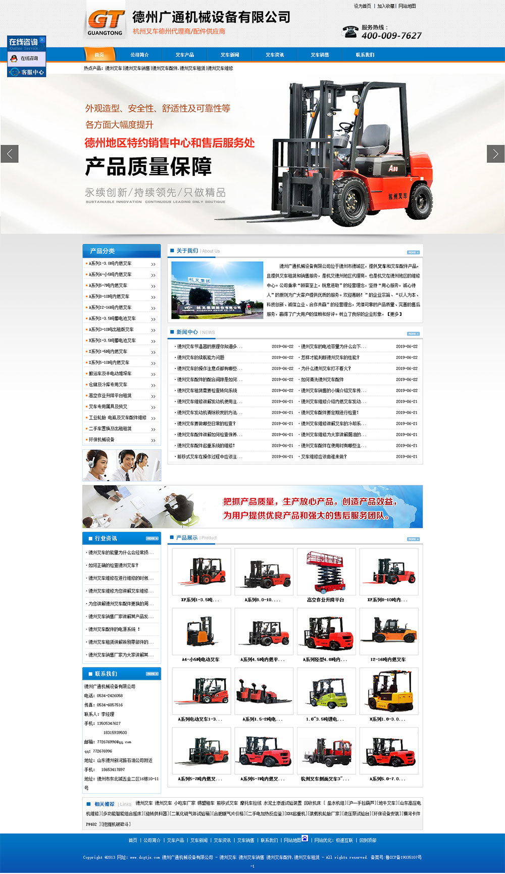德州广通机械设备有限公司位于德州市德城区,是杭叉在德州地区的特约销售中心和售后服务处,也是杭叉在德州地区的维修中心。公司秉承“顾客至上,锐意进取”的经营理念,坚持“用心服务,诚心待人”的原则为广大客户提供优质的服务。欢迎惠顾!”的企业宗旨、“以人为本、科技创新、诚信立业、合作共赢”的经营理念,凭借可靠的产品质量、完善的售后服务,嬴得了广大用户的信赖和好评。树立了良好的企业形象,建立了广泛的协作领域。